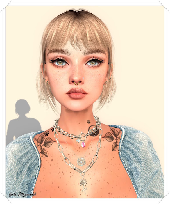 Hair from Lamb, top from SPIRIT, pants from (fd), all 3 for The Saturday Sale (75L each). Necklace set from LaGyo, 60L for Happy Weekend.The set includes 4 necklaces that can be worn separately (the white choker is not part of the set) and each part comes with a HUD to change metal and crystal colors. It's pretty awesome.